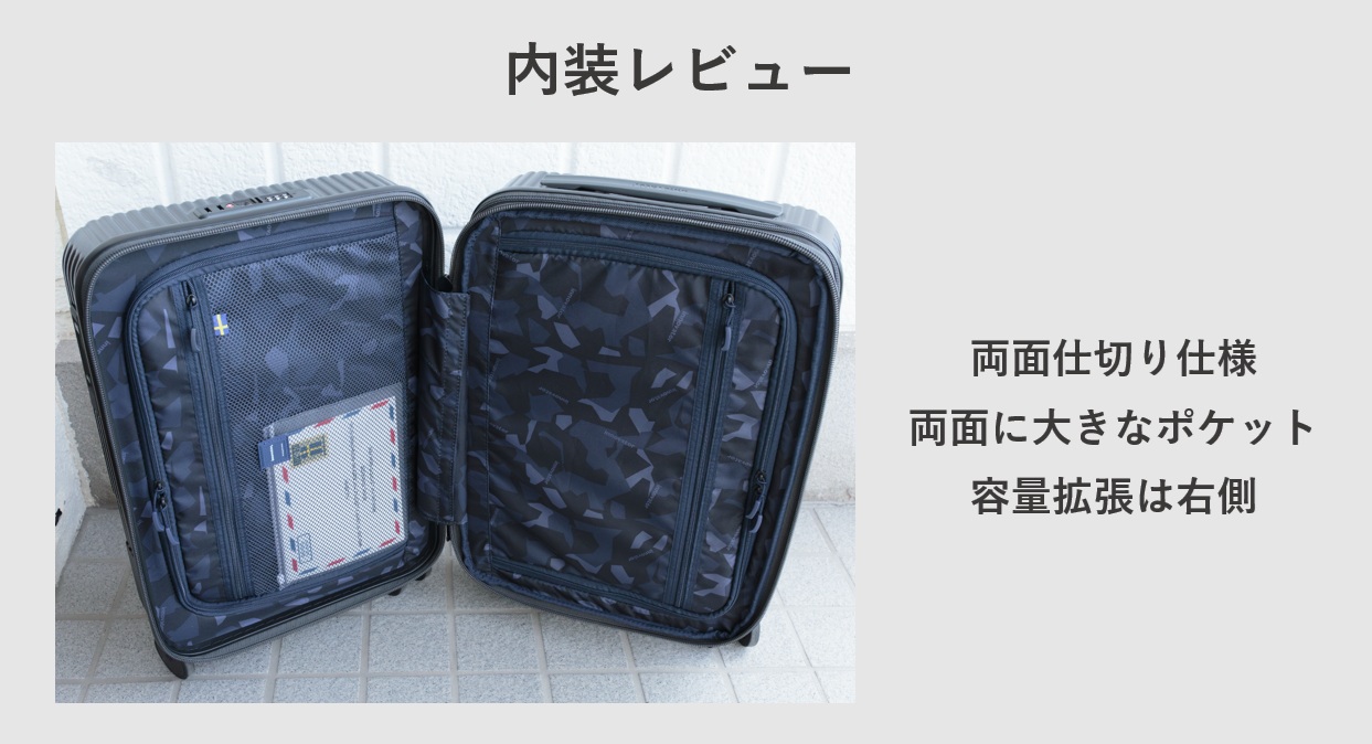 このINV43EXはデザインで選ぶスーツケースかなと思います。