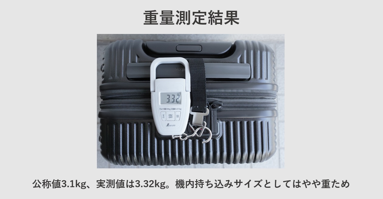 スタンダードタイプの機内持ち込みサイズとして重ためです。