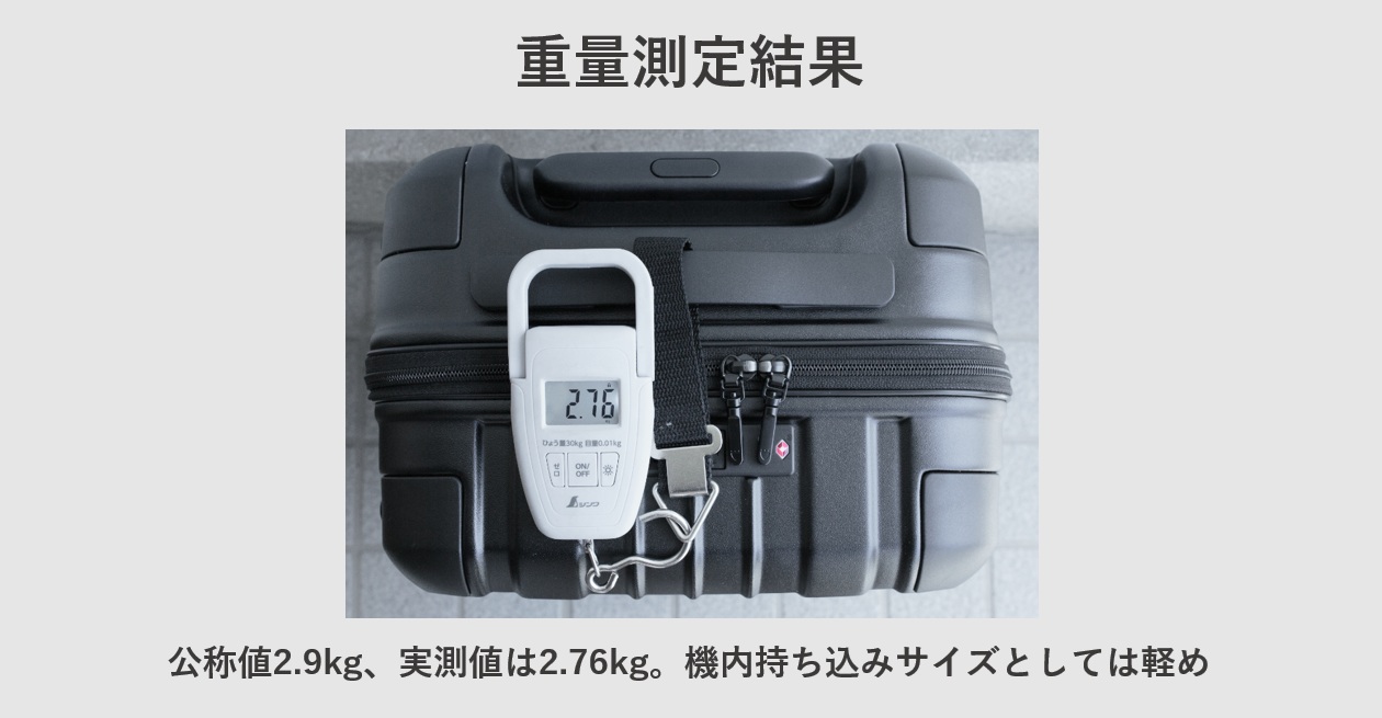 - ✔重量が実測値2.76kgと軽め