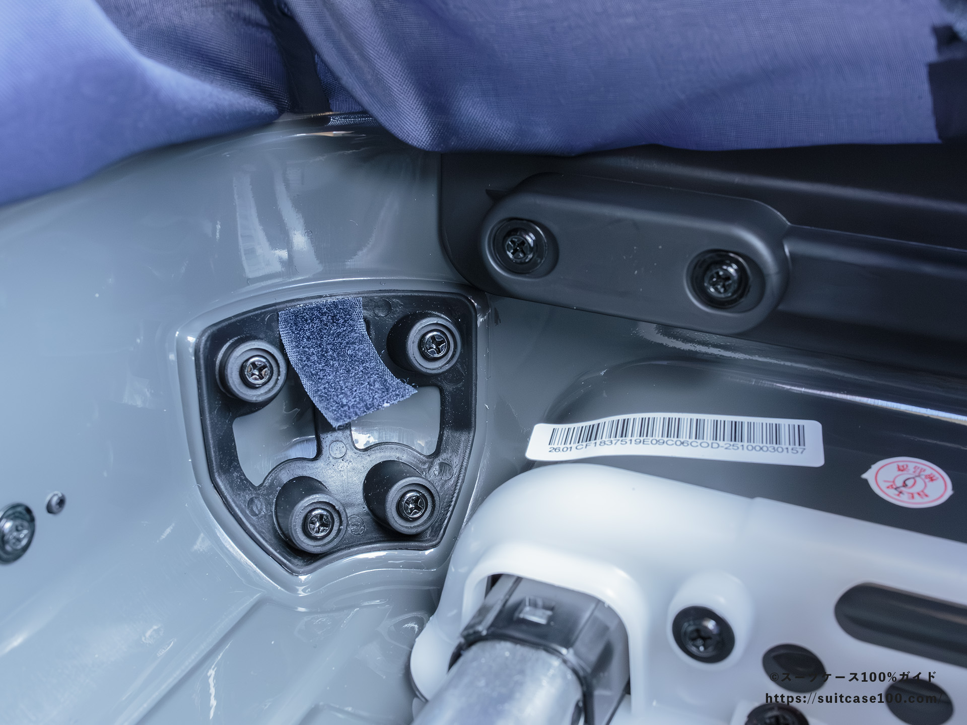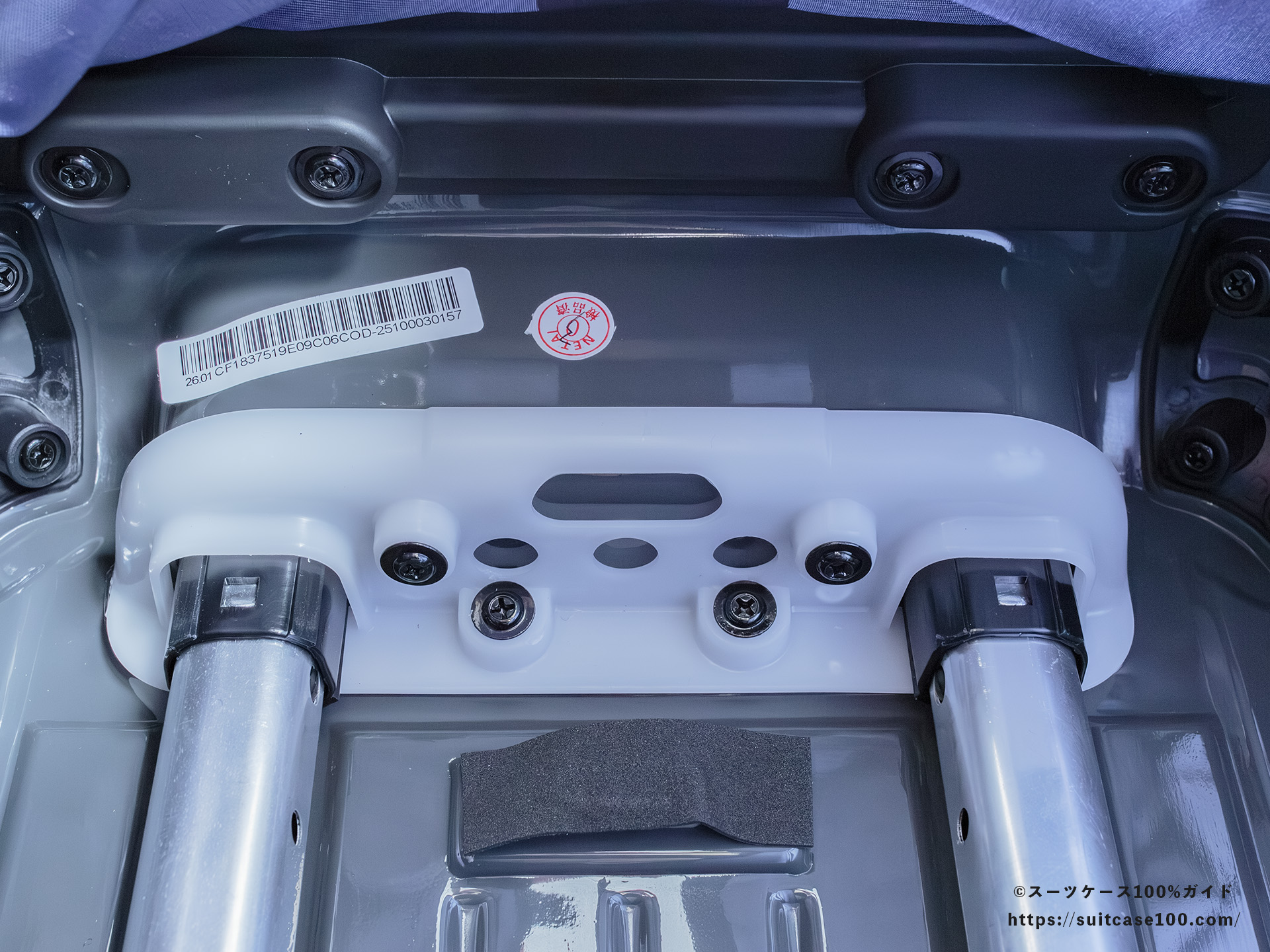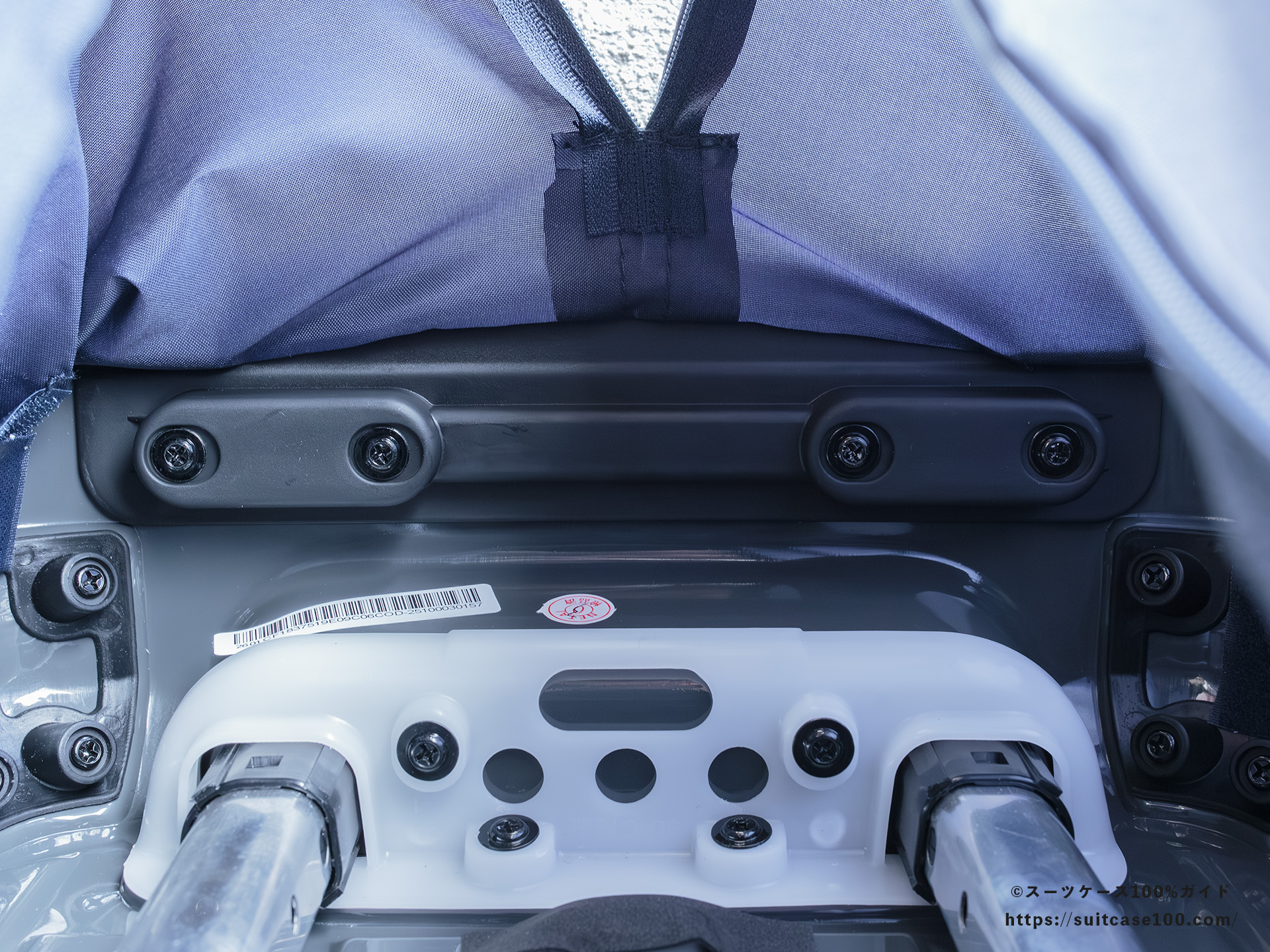 ここからは見えないですが、キャリーハンドル根本に注意ラベルがありました。