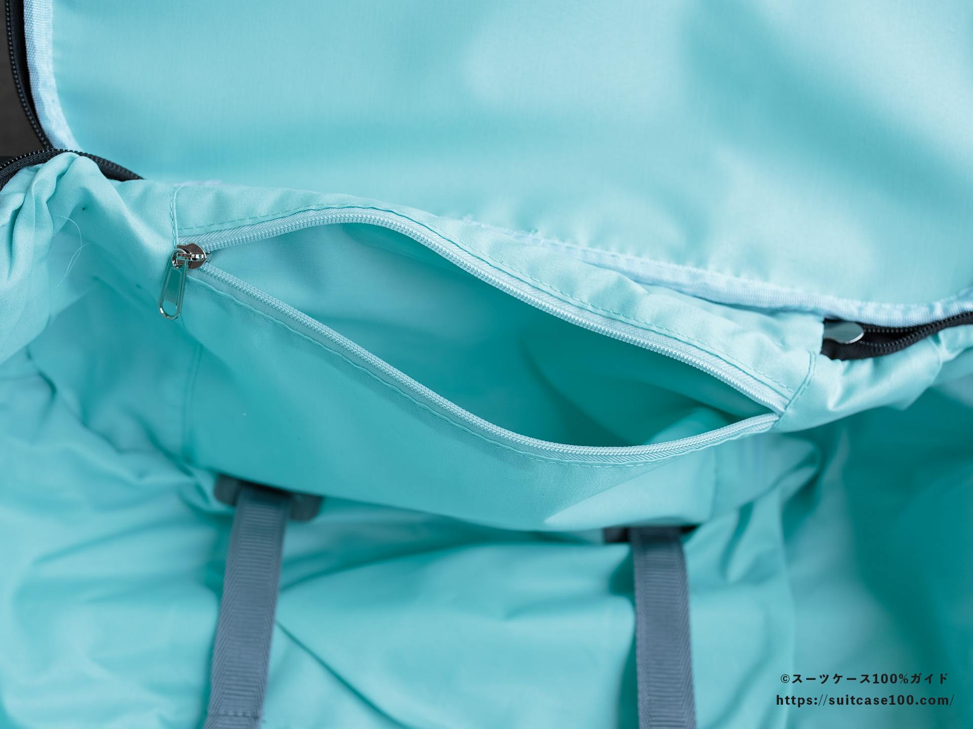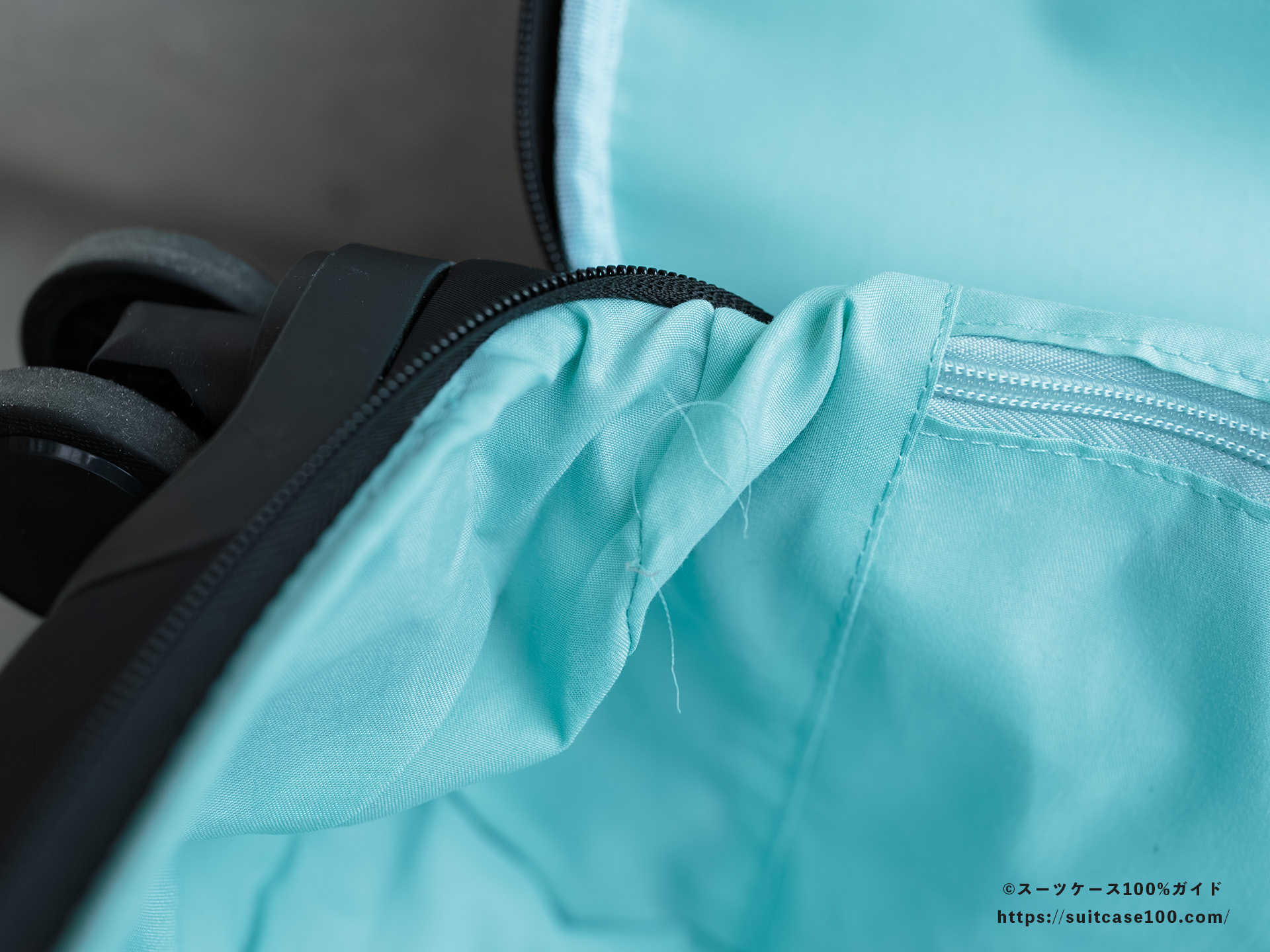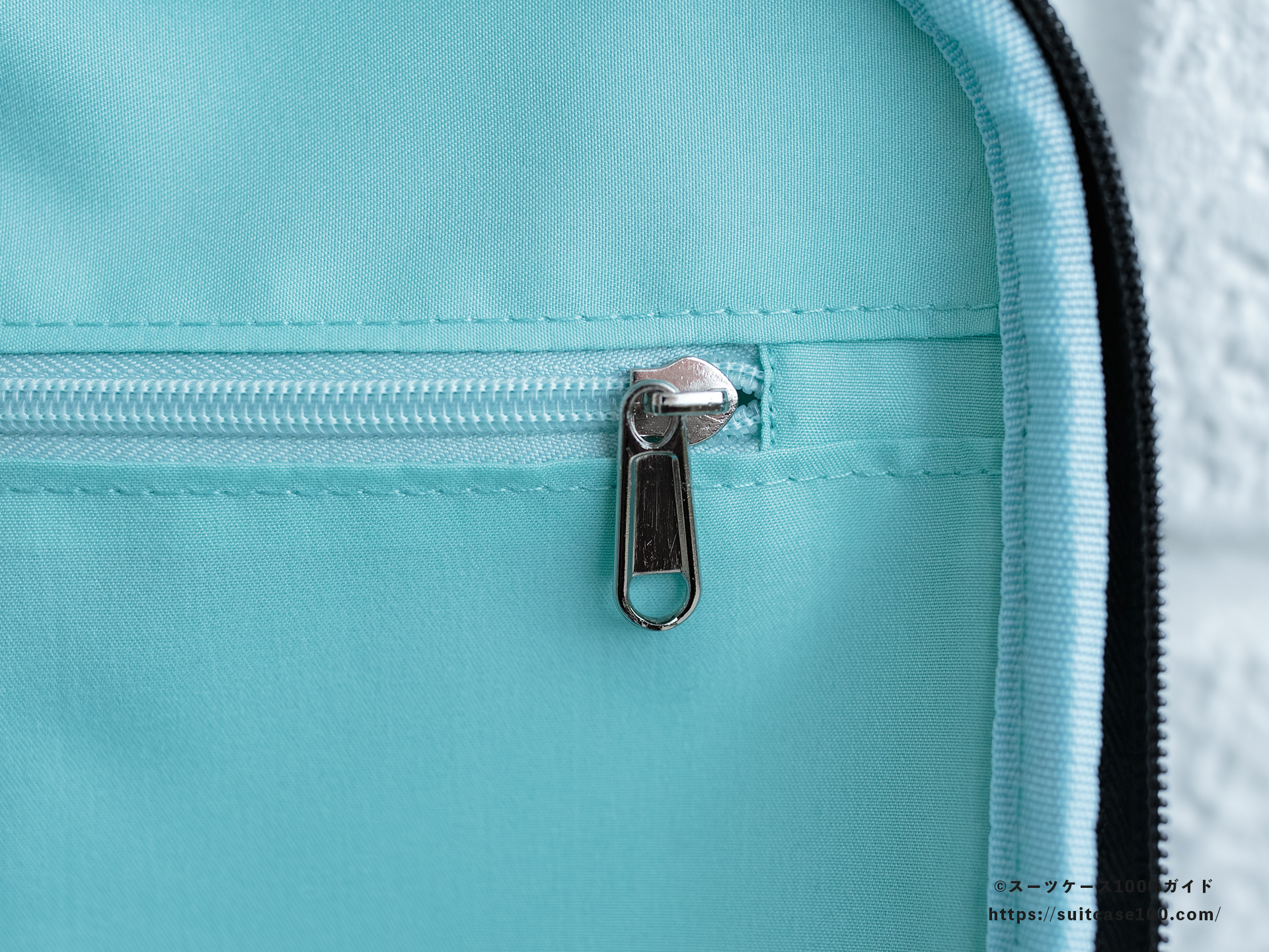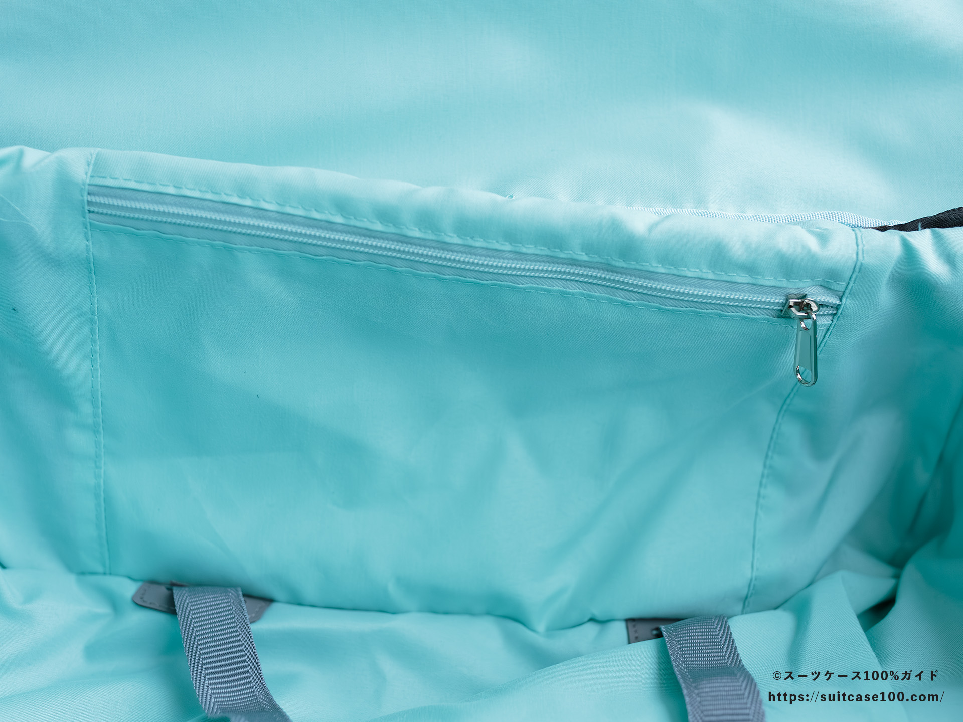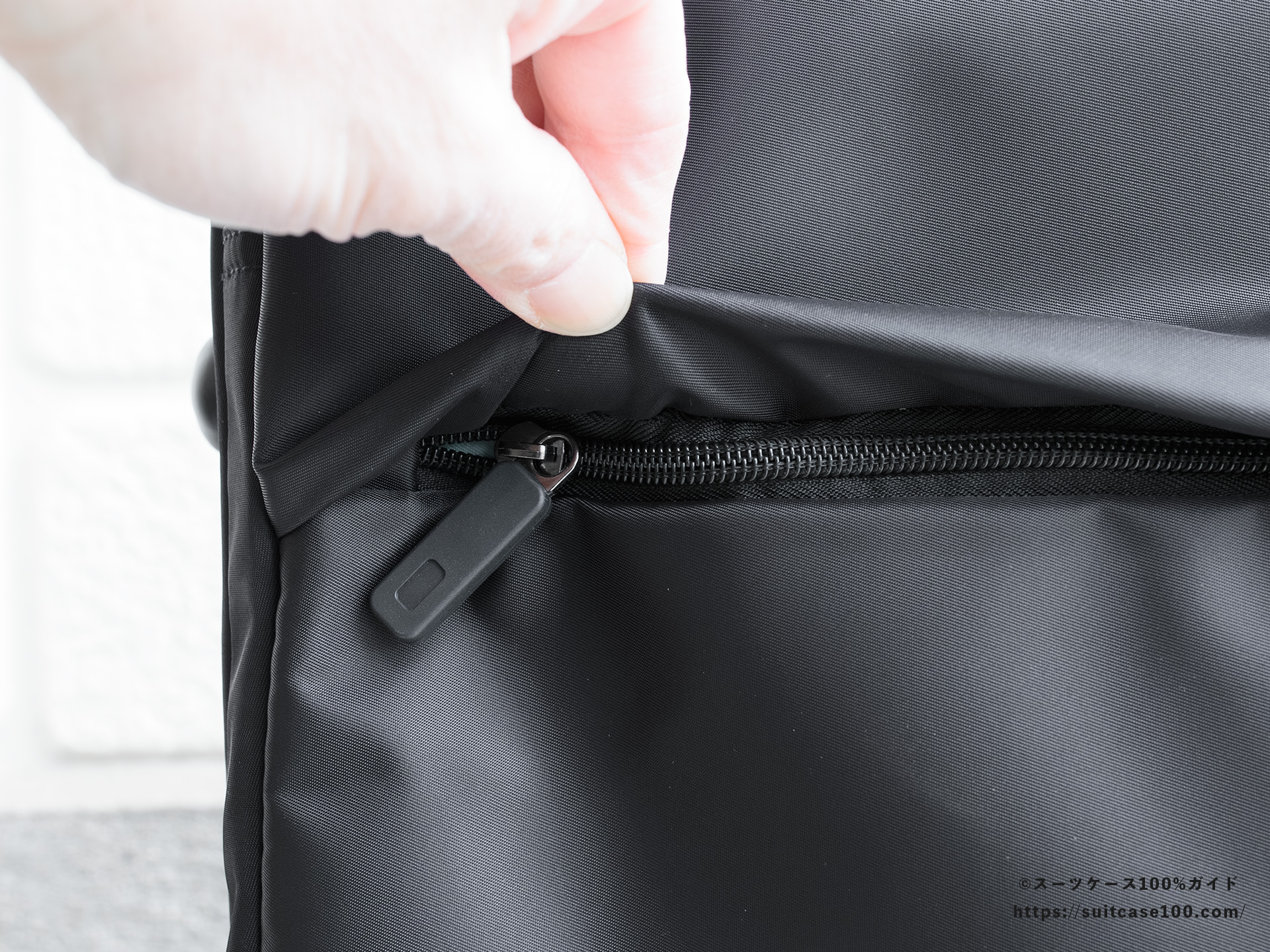 キャリーハンドルを出すには、このファスナーを開ける必要があります。