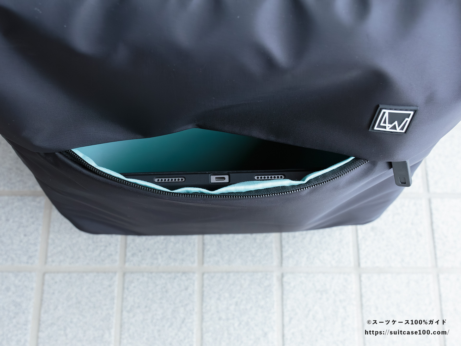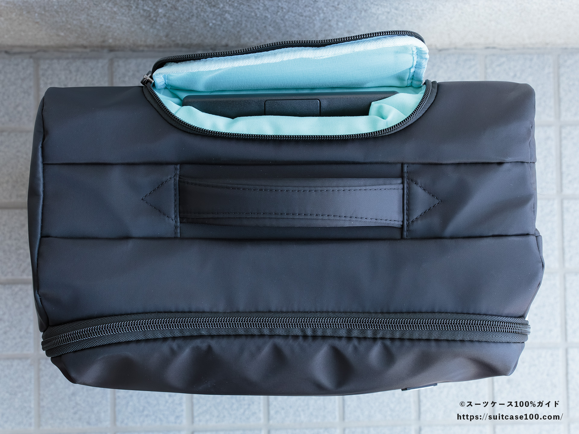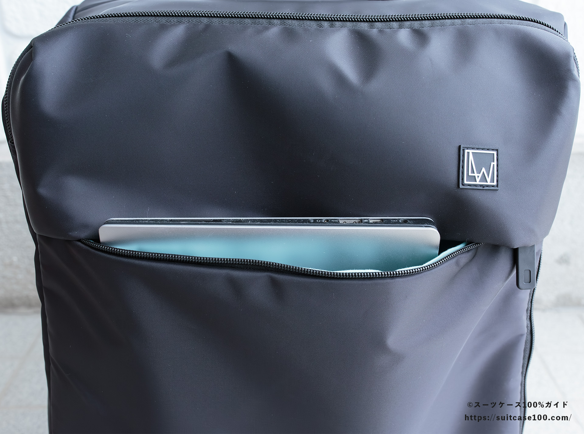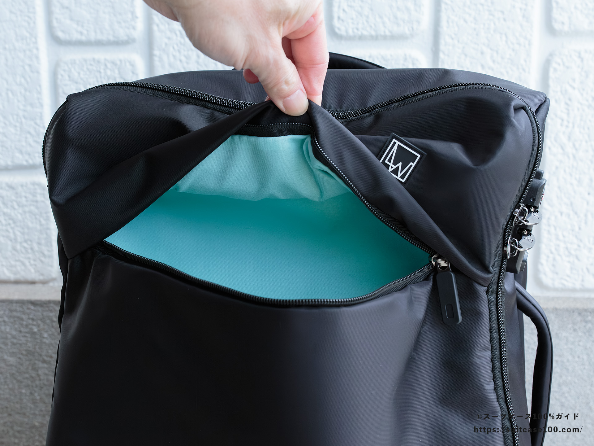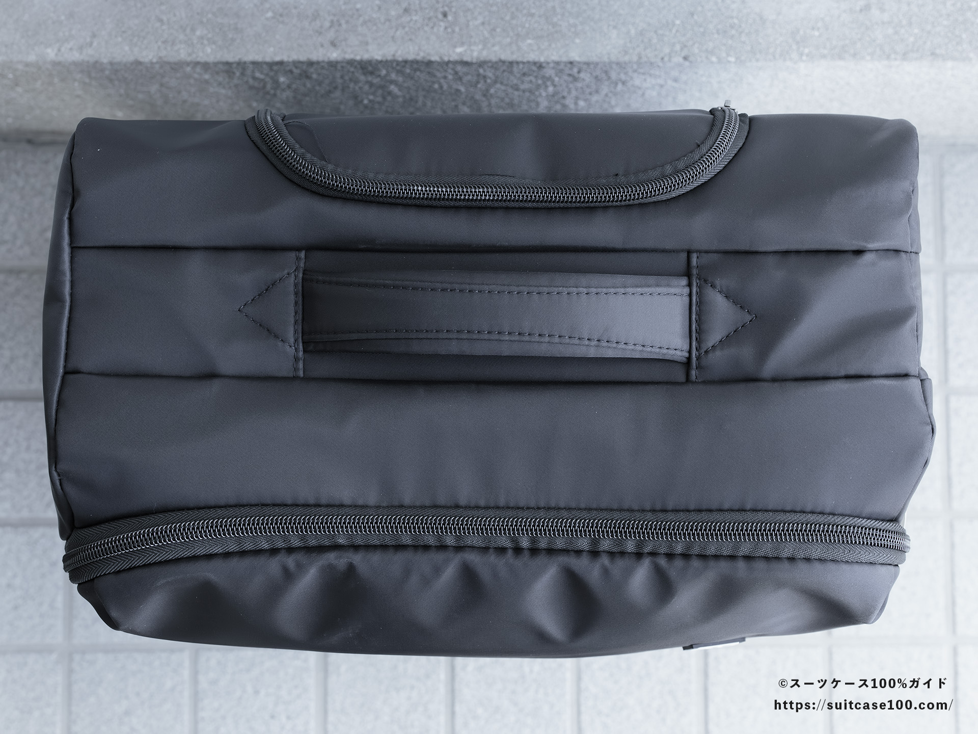 キャリーハンドルを出すには、このファスナーを開ける必要があります。