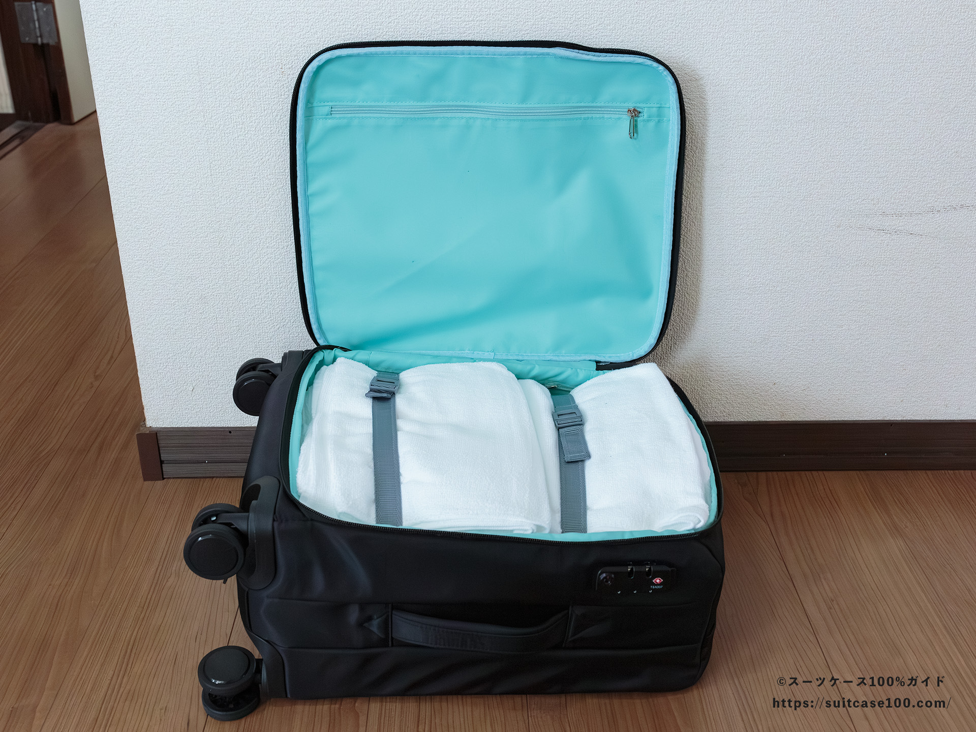 | 容量 | ◎ | フェイスタオル60枚、機内持ち込み最大級 |