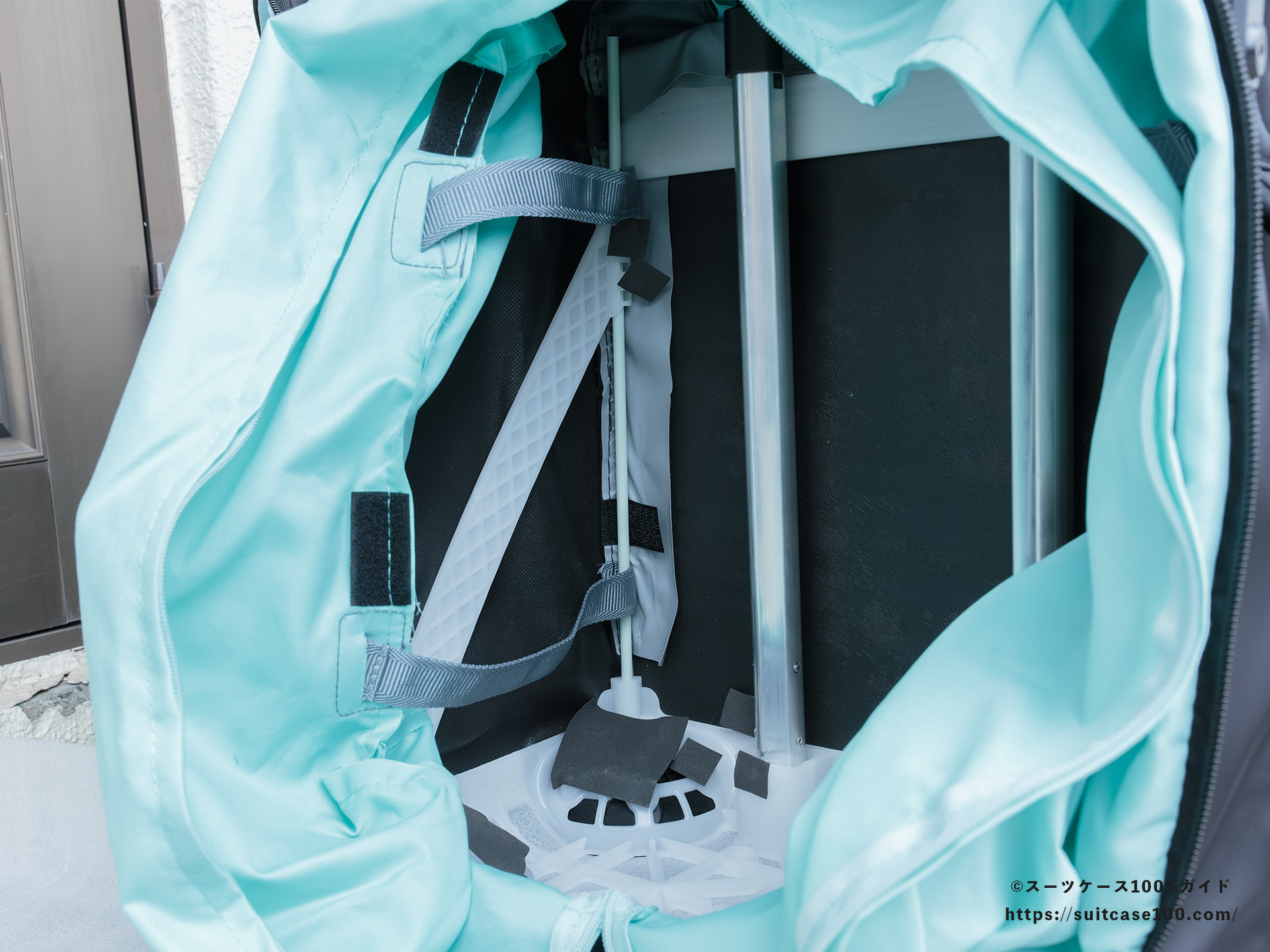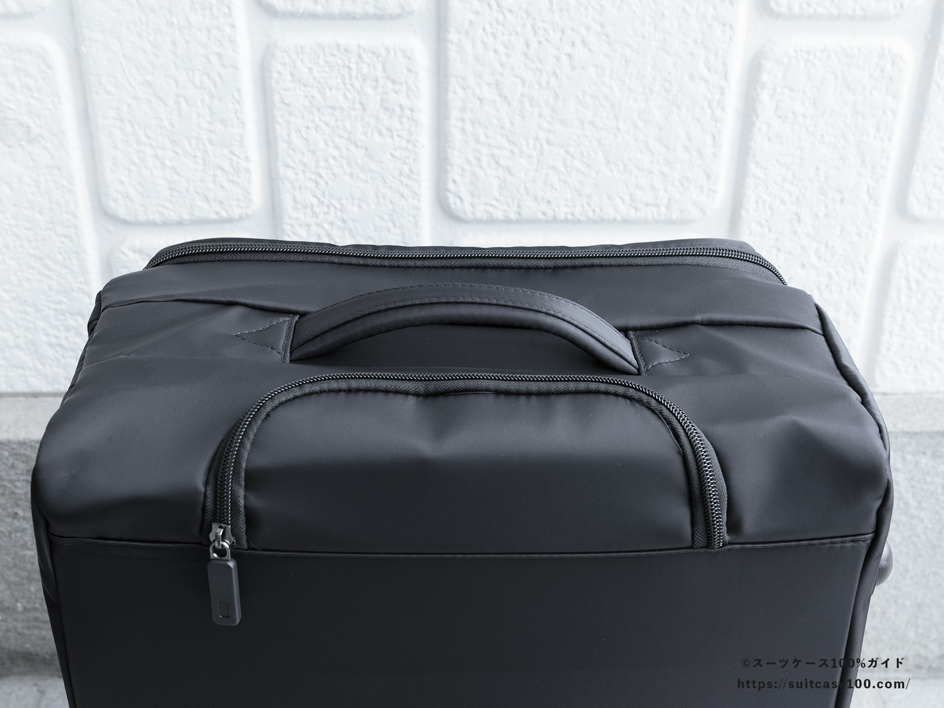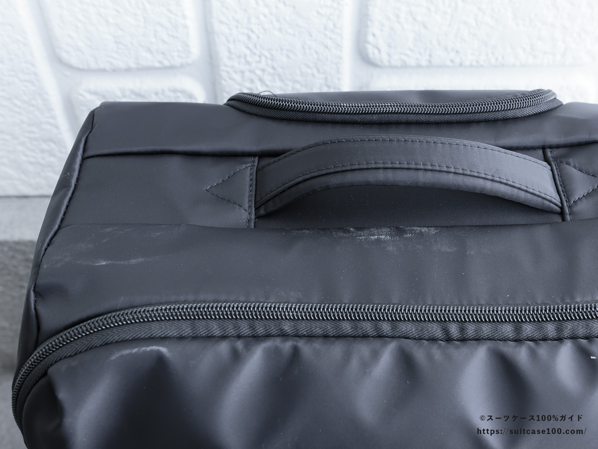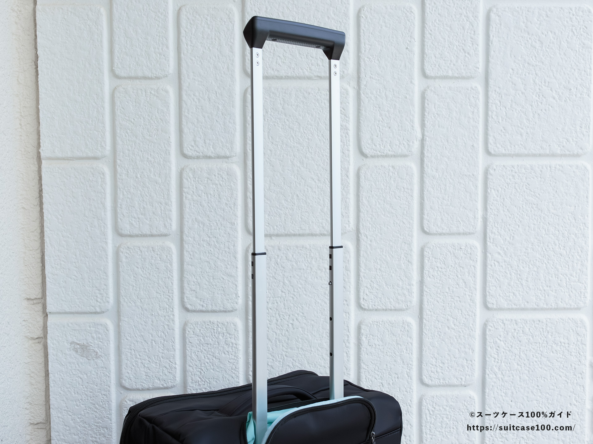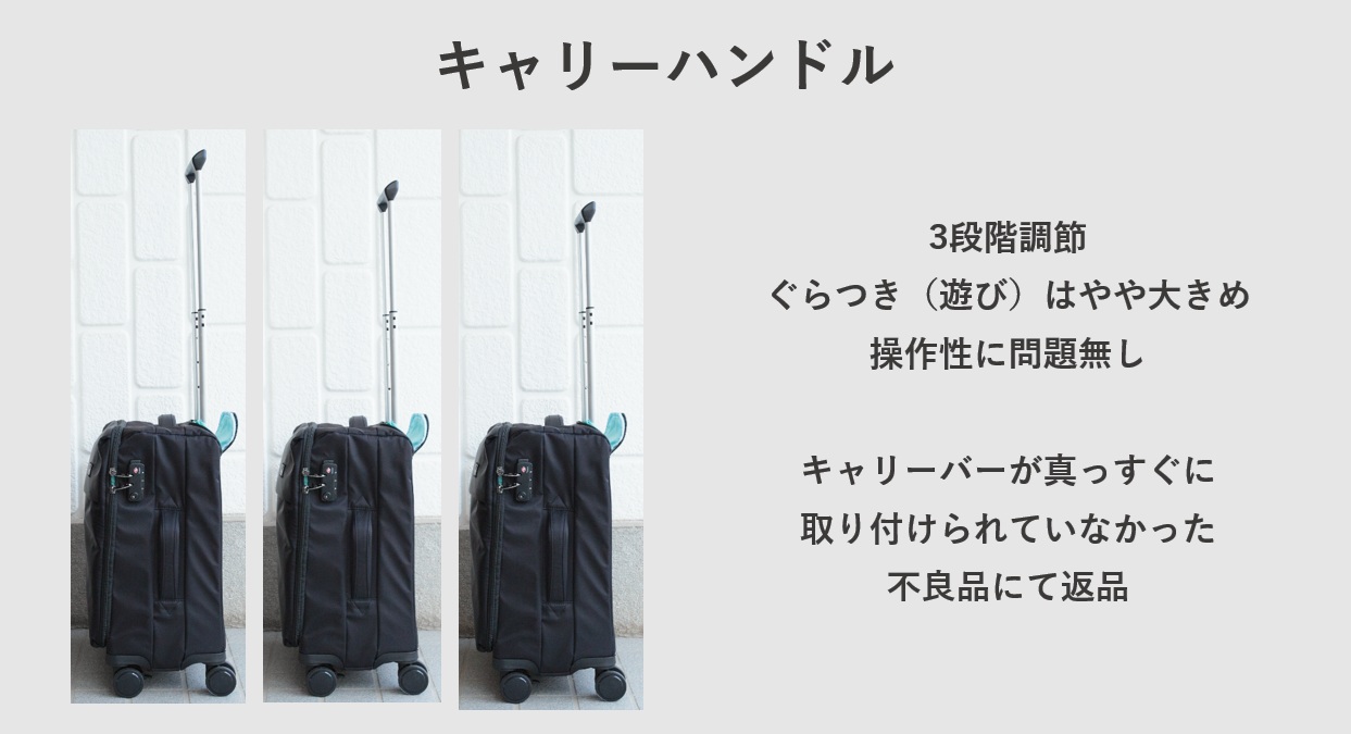 キャリーハンドルの傾きが大きいなど、走行性が悪く真っすぐ転がしにくいのが悪い点。
