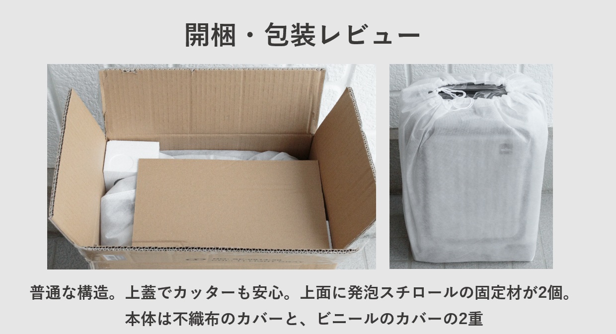 | 包装 | ◎ | 汎用的な不織布カバーとビニール袋 |
