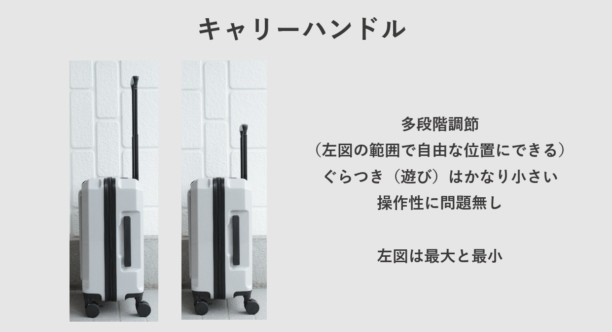 - ✅ぐらつきがかなり小さいキャリーハンドル
