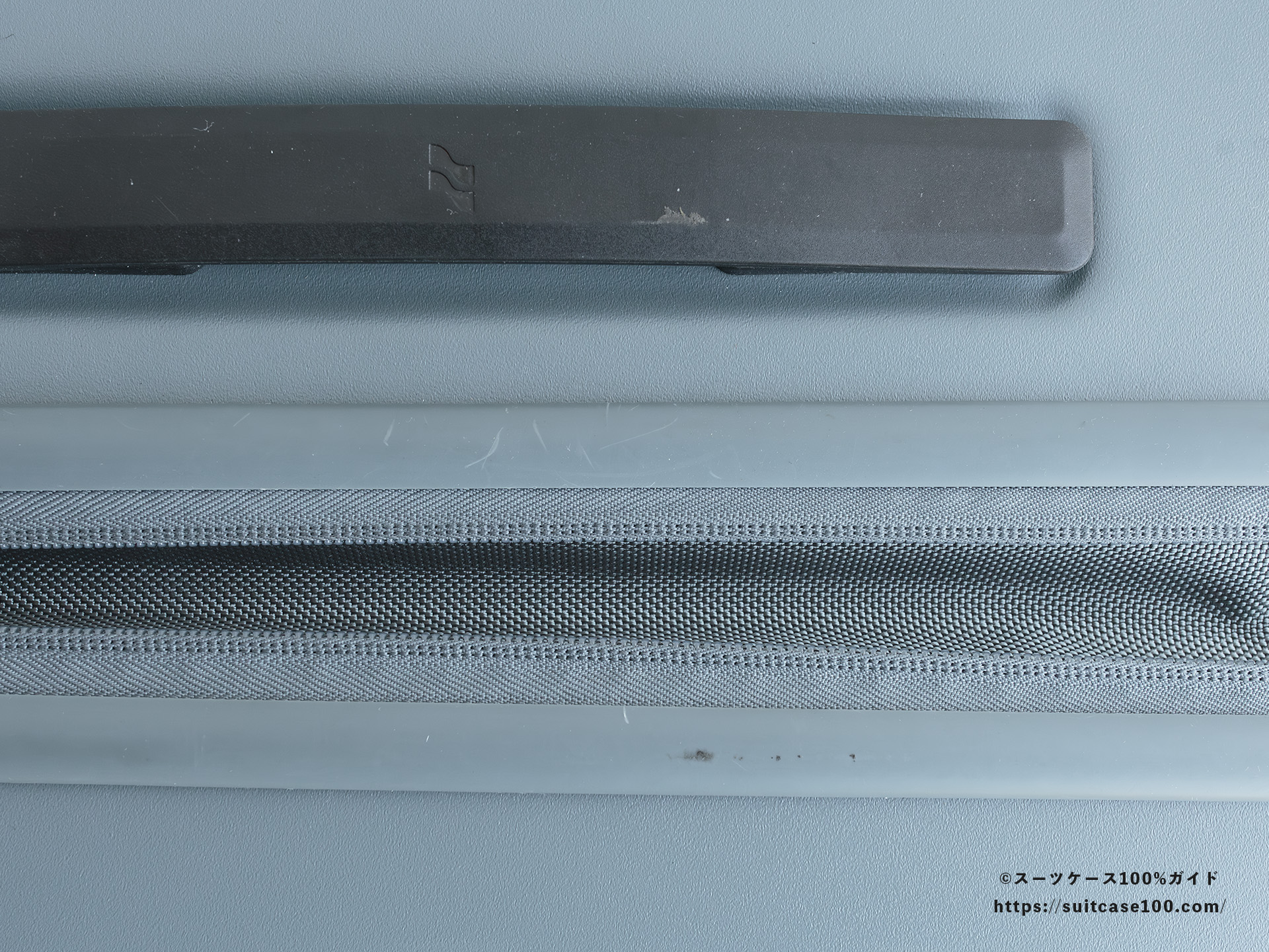 ファスナーのシール部の白い傷は爪によるものですね。
