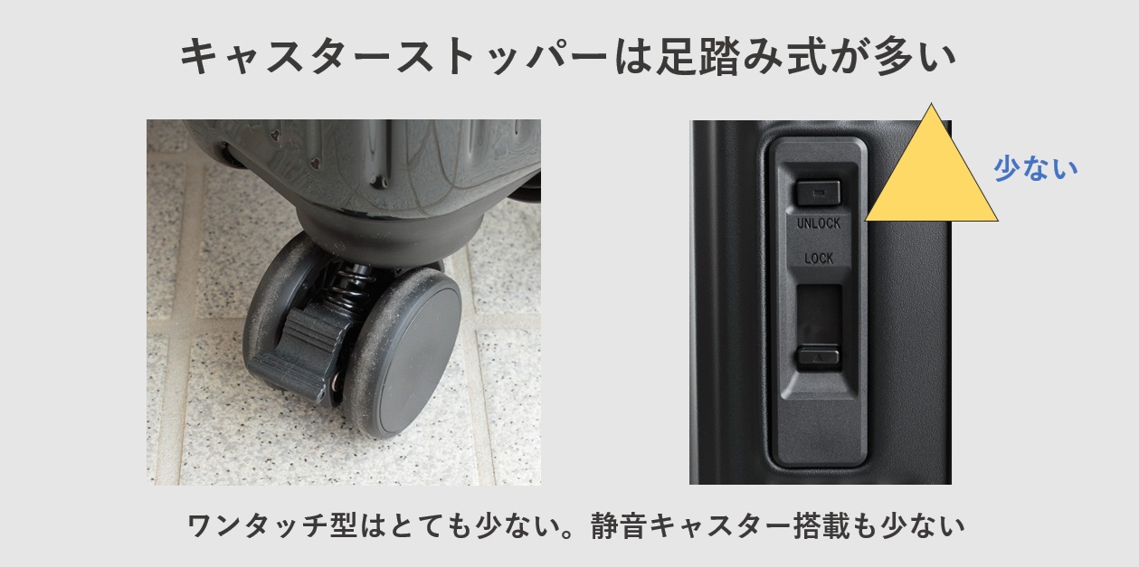 キャスターストッパーも足踏み式のいまいちなやつばかり。