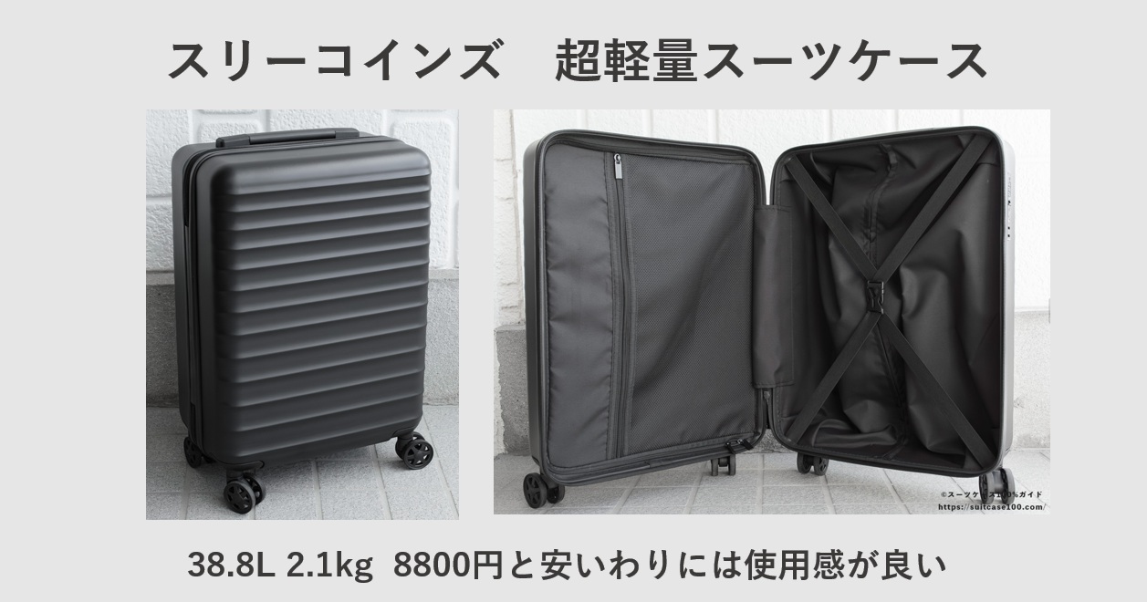 ・3COINS(スリーコインズ) 超軽量スーツケースをレビュー!プロが検証