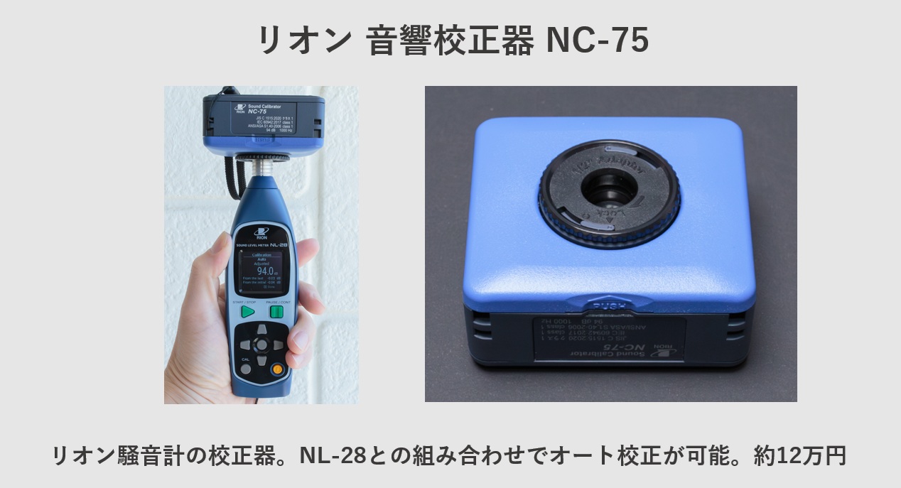 騒音計の感度を正しく調整する音響校正器を併用しています。