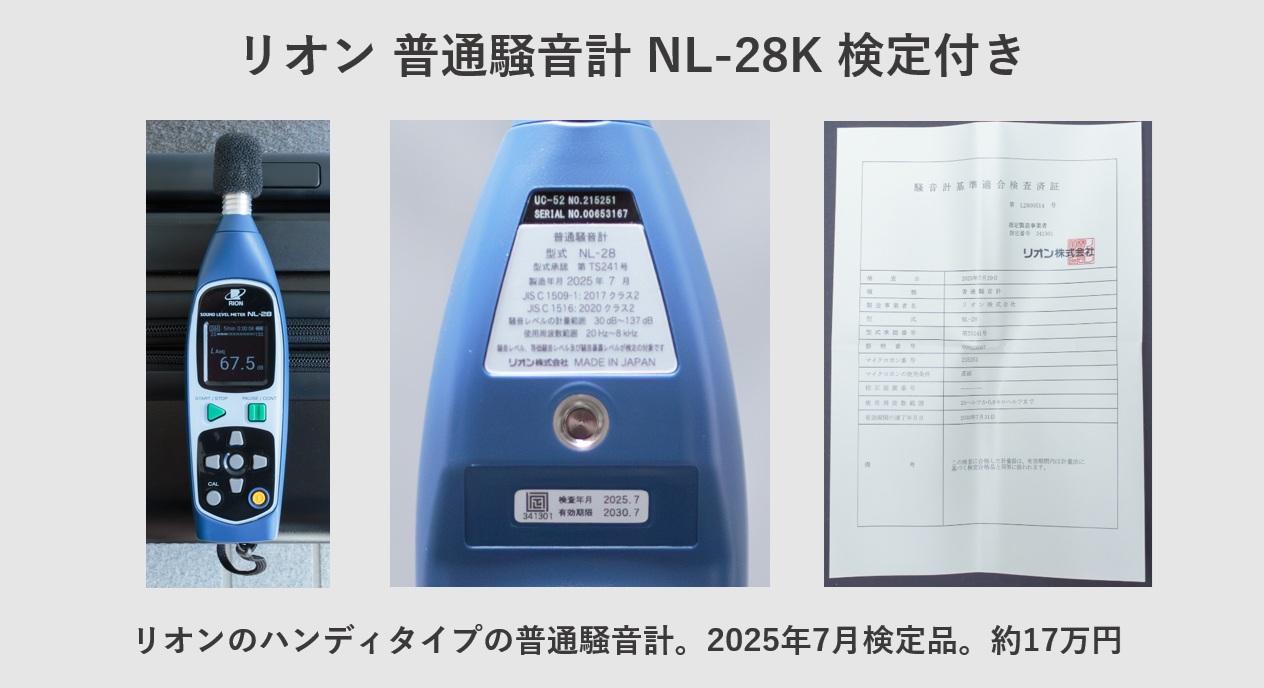 普通騒音計(リオン NL-28K 検定付き)